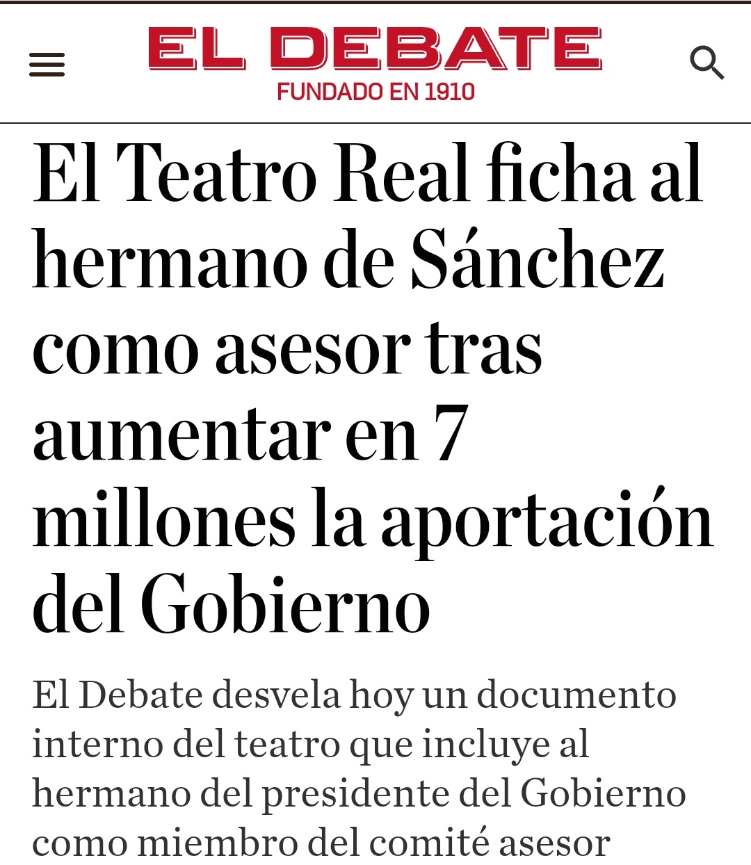 Sánchez enchufa a su hermano en el Teatro Real ¡Ayuso dimisión! Este es el "impuesto" que los españoles deben pagar para acceder al "progreso" que los socialistas quieren para los españoles.