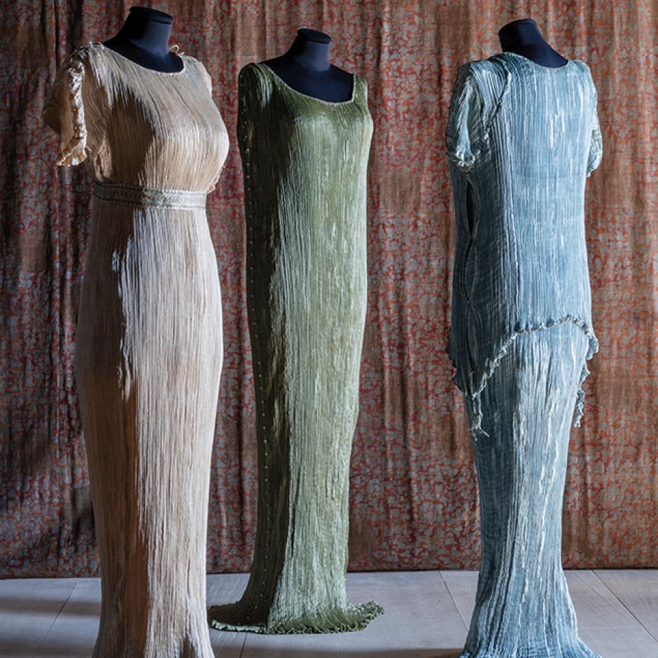 Una de las contribuciones más notables de Fortuny fue en el ámbito del diseño textil y de moda, donde se destacó por sus túnicas y togas inspiradas en la antigua Grecia. Su creación más famosa, el vestido Delphos, es un testimonio de la elegancia y la complejidad técnica, con pliegues finos y cuentas de vidrio que mantenían su forma. Este vestido reflejaba un estilo atemporal y exótico que cautivaba a la alta sociedad europea de la época.